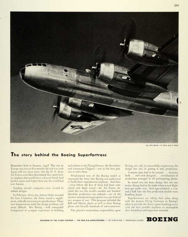 1944 Ad Boeing Co Aerospace Destroyer B-29 Superfortress Bomber Engineers FZ6 Clearance From China