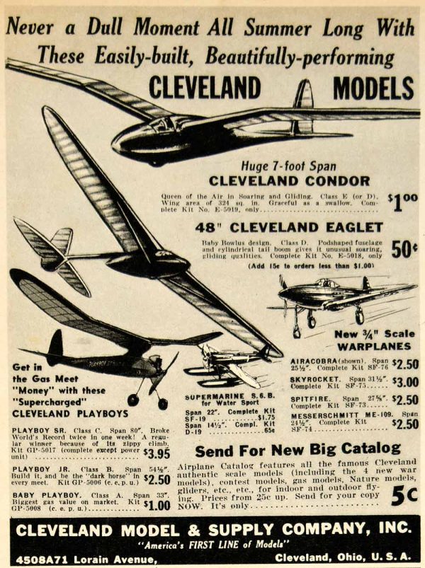 1941 Ad Cleveland Model Airplane Condor Eaglet WWII Aircraft Supermarine S YAT1 For Sale Cheap Pice