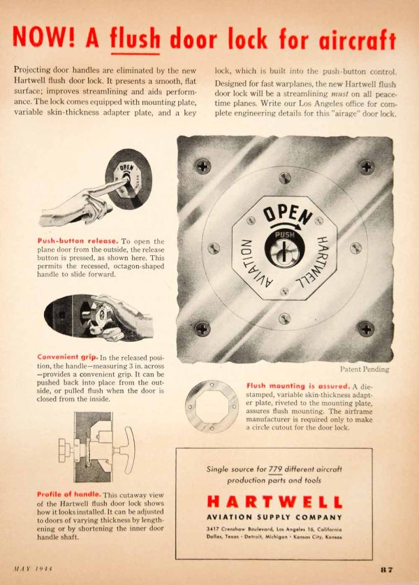 1944 Ad Hartwell Aviation Aircraft WWII Airplane 3417 Crenshaw Blvd Los YSW3 Sale Outlet