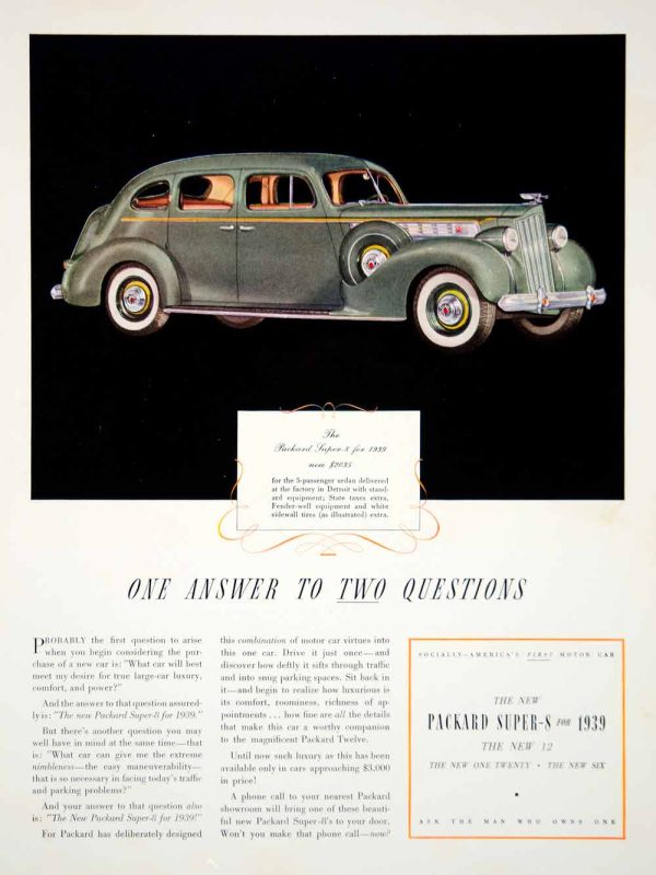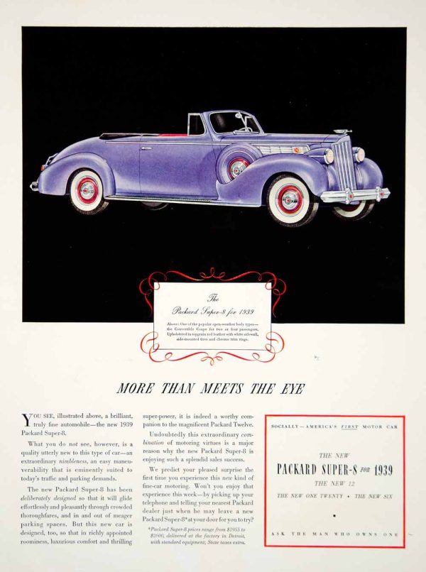 1939 Ad Vintage Packard Super-8 Five-Passenger Sedan Automobile Car Gray Model Amazon Sale Online