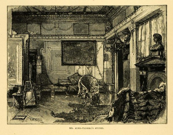 1887 Wood Engraving Alma-Tadema Studio Artist Easel Sculpture Bust Work XAE1 Free Shipping Reliable