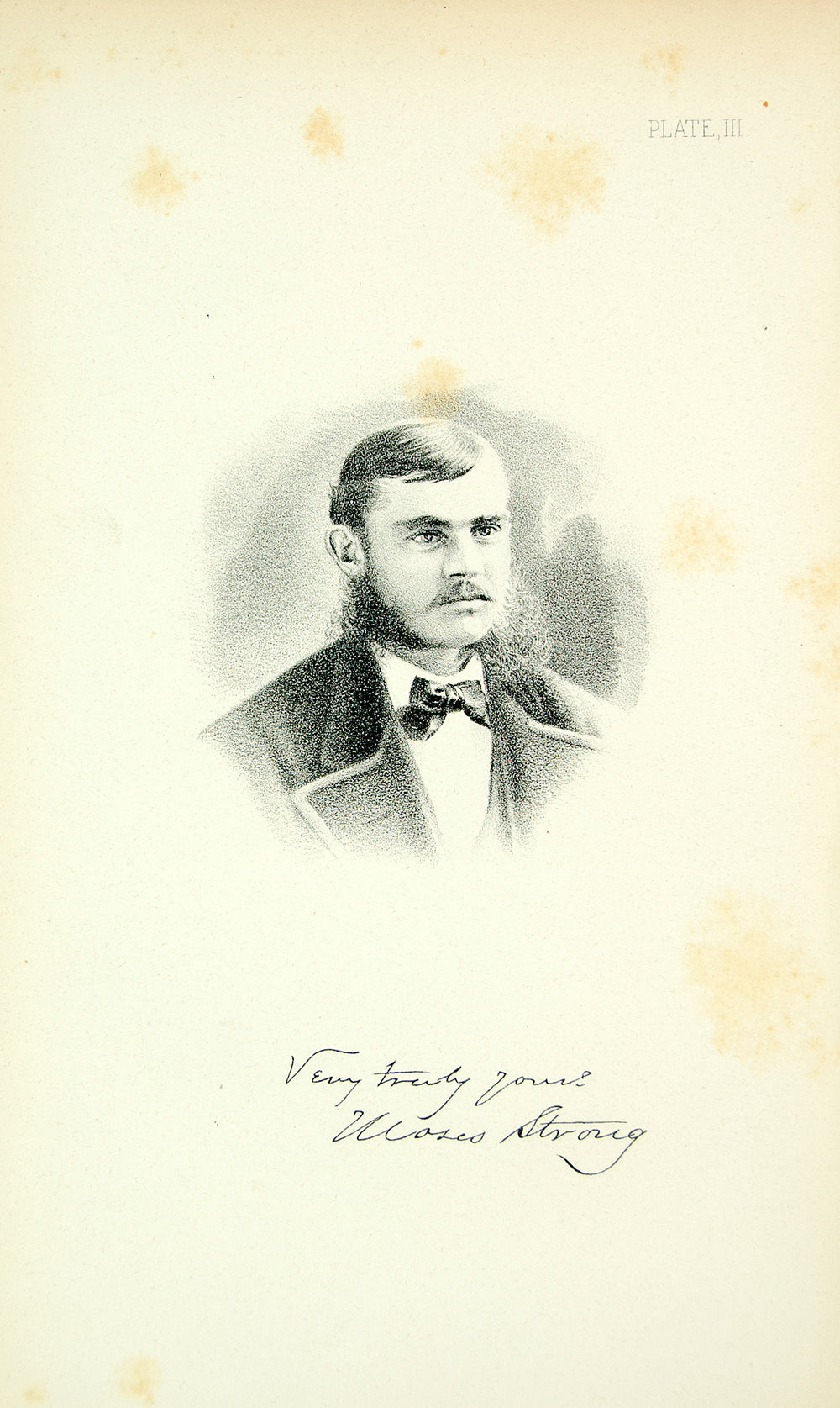 This is an original 1880 black and white wood engraving of a portrait of Moses McCure Strong (1810-1894), a Wisconsin lawyer, politician and land surveyor.