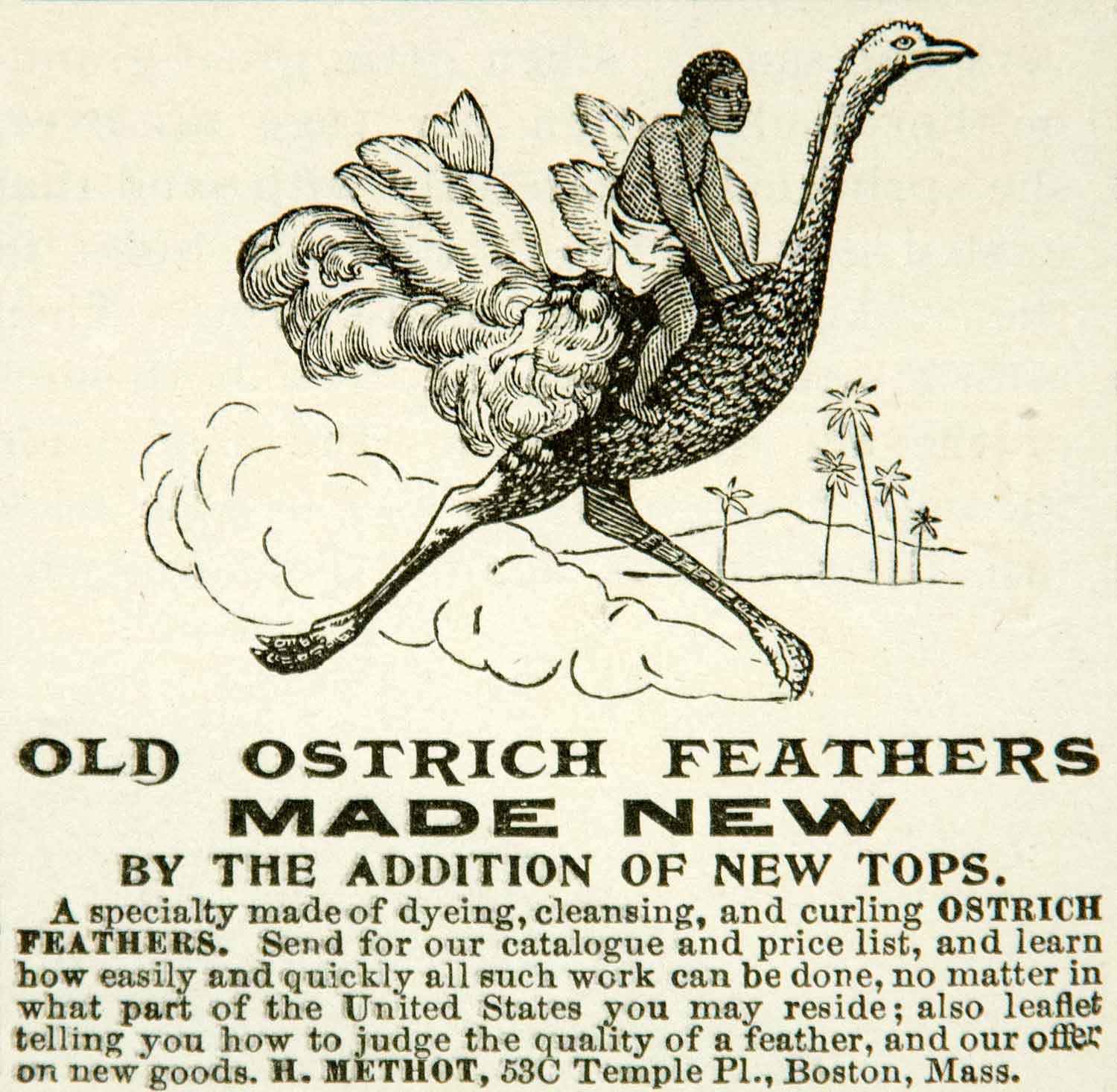 1899 Ad Ostrich Feathers Methot 53C Temple Place Boston African Bird YYC1 Pay With Visa Sale Online