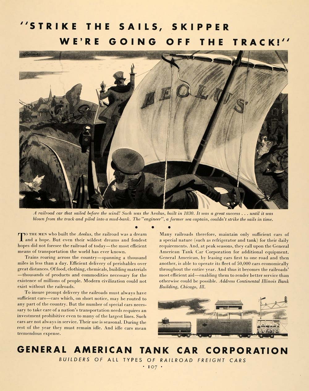This is an original 1931 black and white print ad for the General American Tank Car Corporation.