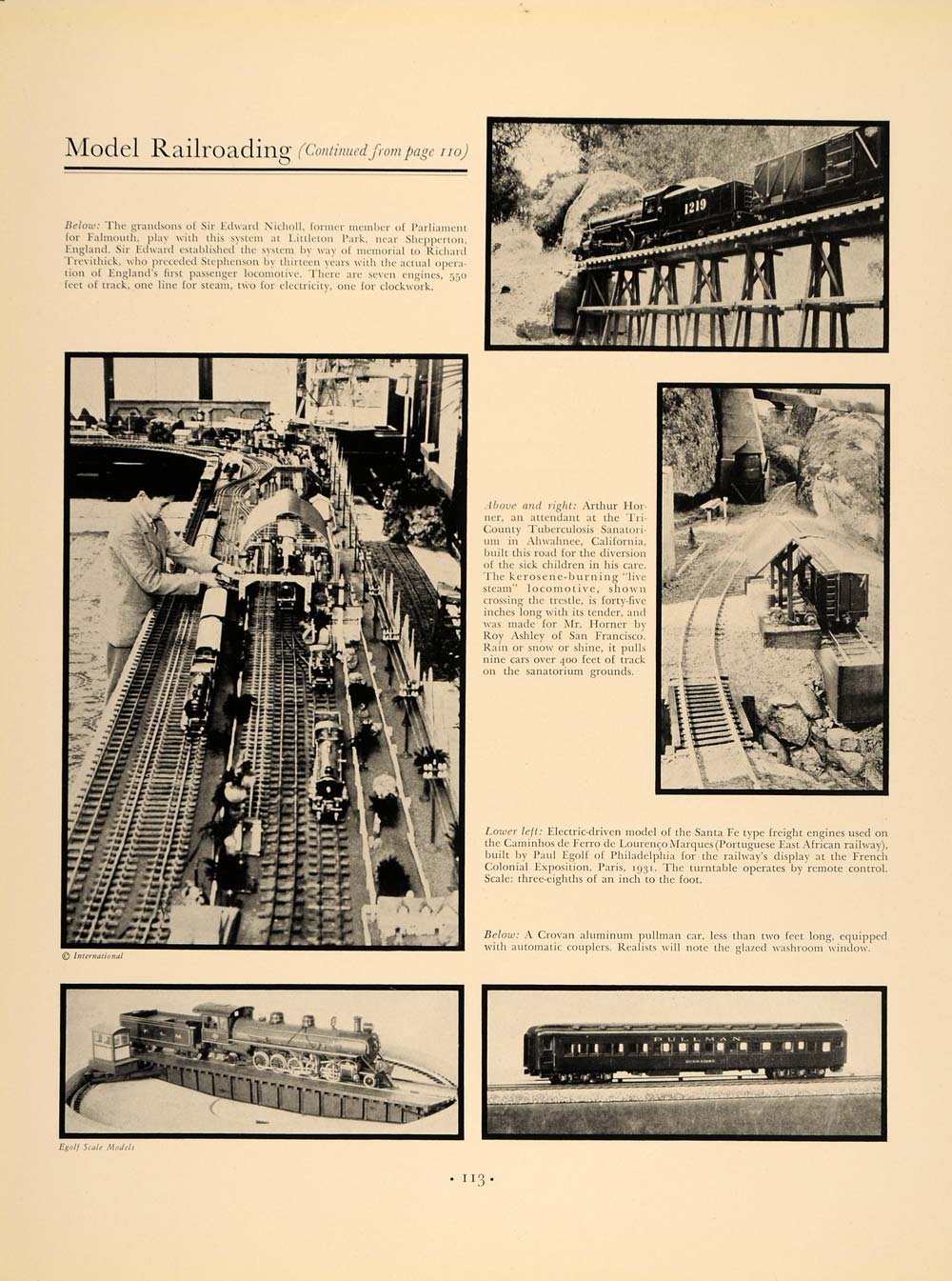 This is an original 1932 black and white print ad for model railroads. The ad features an image of the grandsons of Sir Edward Nicholl.