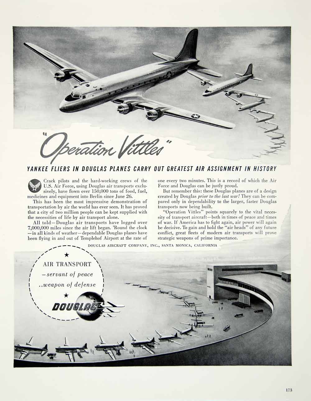 This is an original 1948 black and white print ad for the Douglas Aircraft Company.