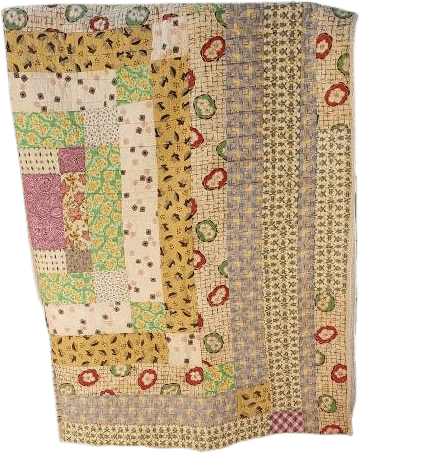 purchased from the maker’s great granddaughter, this lovely quilt has been dry cleaned and is in very good condition with only a very faint, hardly noticeable darkness on the “wrong” side along some seams; looks like the part on the seams hasn’t faded as much. see pics