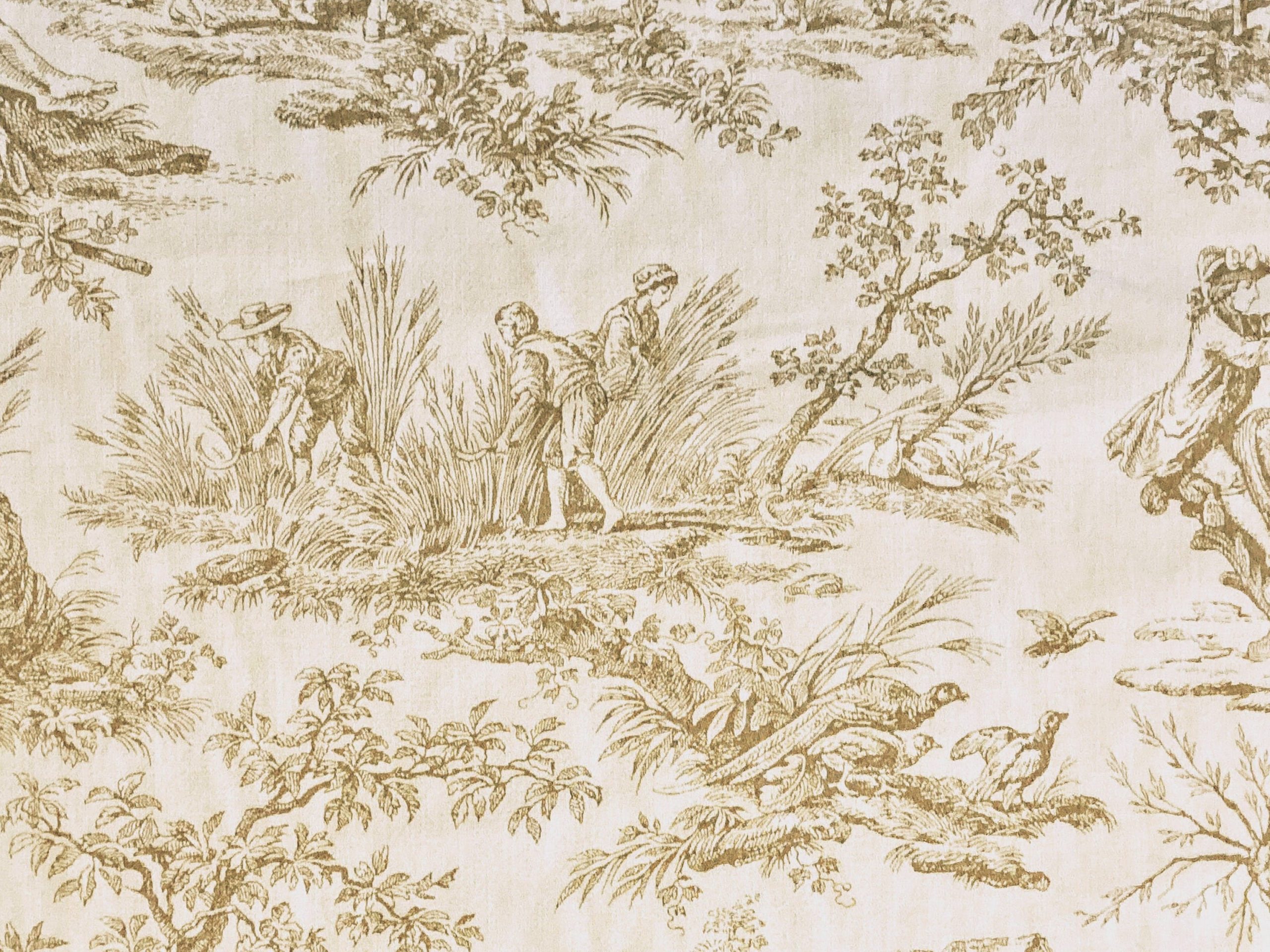 – Light/medium weight cotton sateen in light brown on cream.