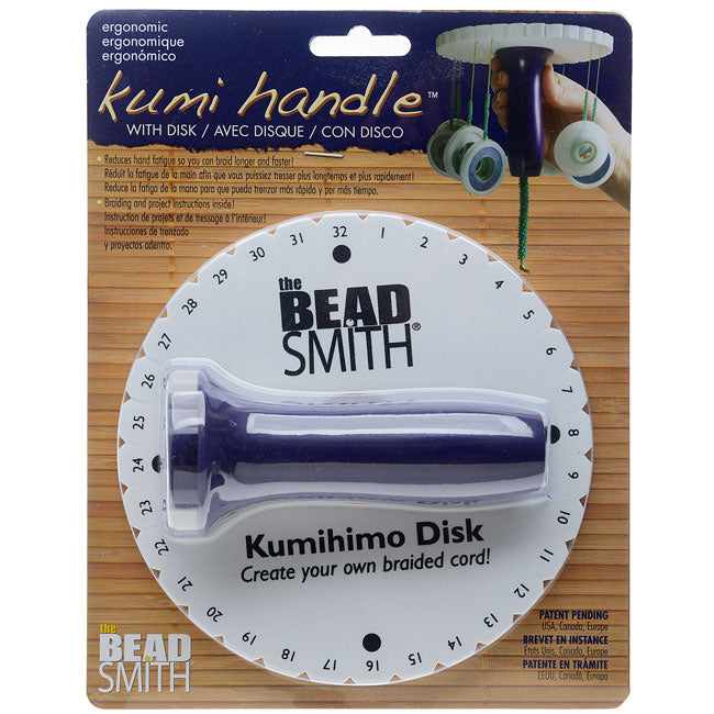 - This innovative Kumi Handle helps reduce hand fatigue when braiding. This ergonomic accessory fits securely in the included round Kumihimo disk and allows you to rotate the disk with one hand while moving the threads with the other.